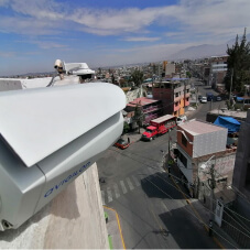 Como parte del sistema, se utilizaron distintos tipos de cámaras según el entorno y la necesidad operativa, incluyendo cámaras fijas, domos y dispositivos con capacidad de monitoreo en zonas estratégicas del distrito.